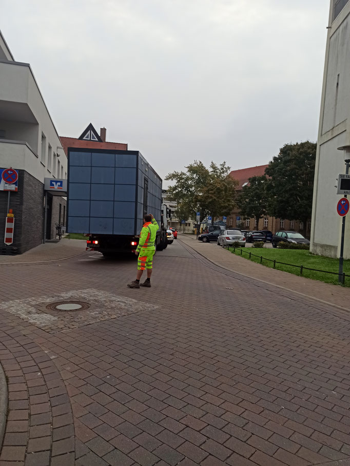 Am 30.09.2025 kam es zu einer kurzzeitigen aber notwendigen, Absperrung des Kichgärtenwegs. Der Grund dafür, war das lang ersehnte Jugendatelier. Es wurde nach 6 Monaten Vorbereitungszeit endlich auf dem JUZ- Gelände aufgestellt. Ein großer Schwerlastkran stellte den großen Container (Jugendatelier) exakt und punktgenau auf dem fertig ausgehärteten Fundament ab. Daher muss man, auch aus Sicherheits-gründen, die Zufahrt in den Kirchgärtenweg für die Transportfahrzeuge freihalten.